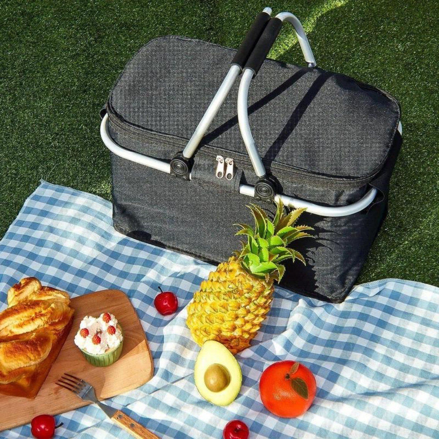 1.30L Insulated Picnic Basket Cooler Collapsible Food Delivery Storage Bag Grocery Market Basket Heat & Cool Insulation w/ Aluminum Handles